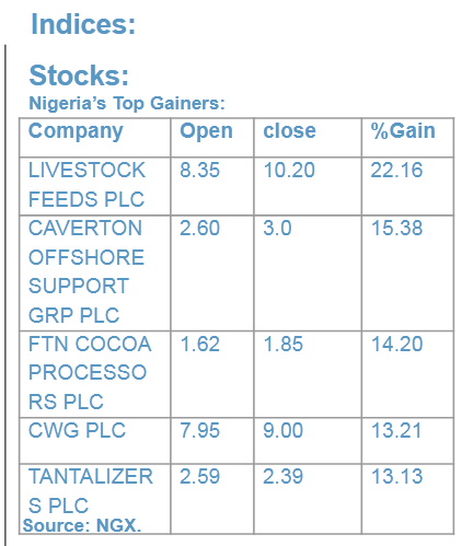 Growth, NGX Consumer Goods, and NGX Commodity indices, which appreciated by 0.89%,