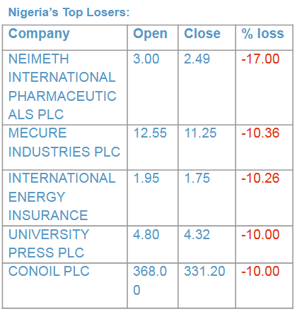 Similarly, all other indices finished lower except for the NGX Insurance, NGX ASeM, NGX MERI